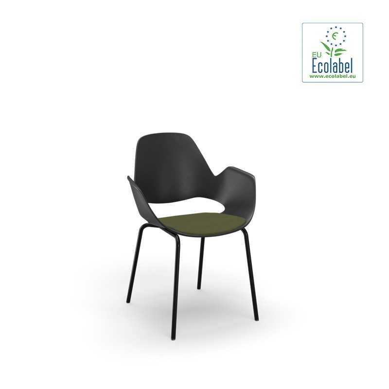Die Sitzschalen der FALK Stuhl-Kollektion bestehen aus 75% recyceltem Kunststoff, 20% Glasfaser und 5% Farbpigmenten