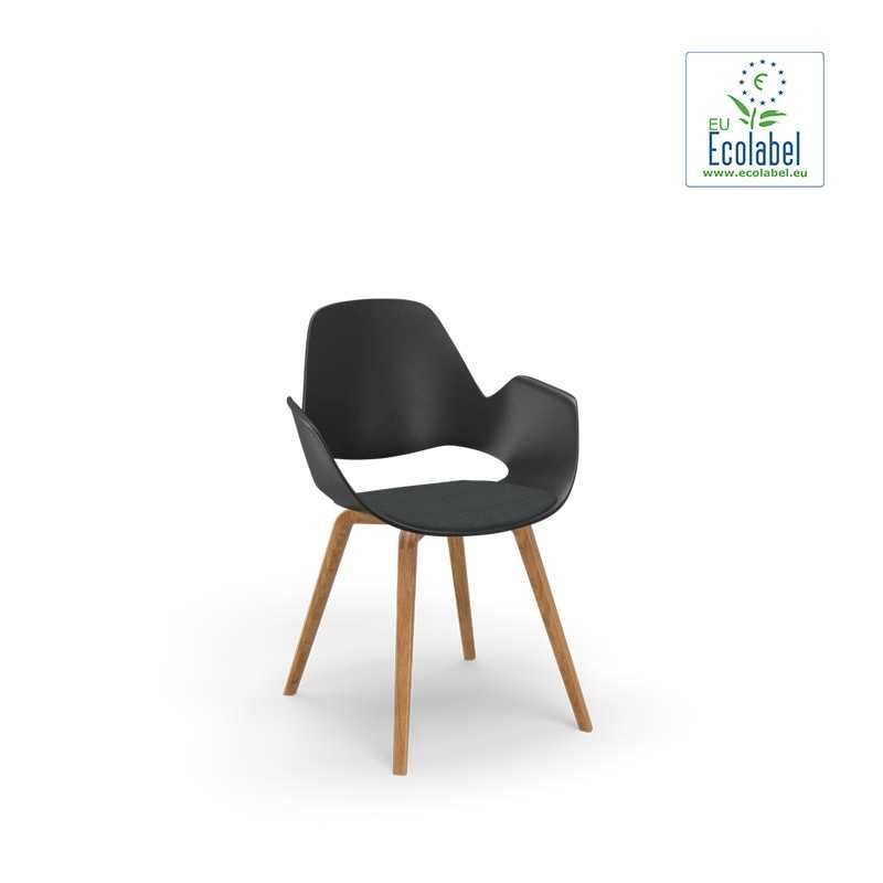 Die Sitzschale der FALK Stuhl-Kollektion besteht aus 75% recyceltem Kunststoff, 20% Glasfaser und 5% Farbpigmenten