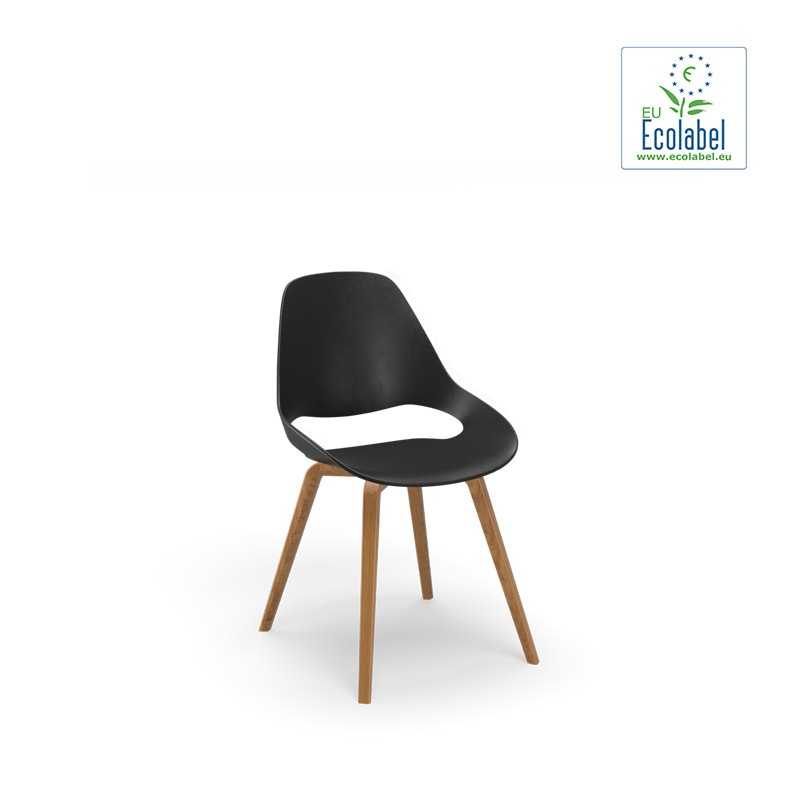 Die Sitzschale der FALK Stuhl-Kollektion besteht aus 75% recyceltem Kunststoff, 20% Glasfaser und 5% Farbpigmenten