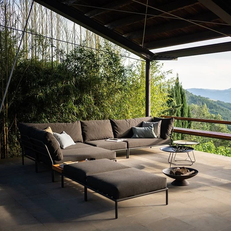 Der Heritage Outdoor-Stoff besteht zu 50% aus recycelten Acrylfasern, 50% spinnendüsengefärbtem Acryl und 3% Polyester.